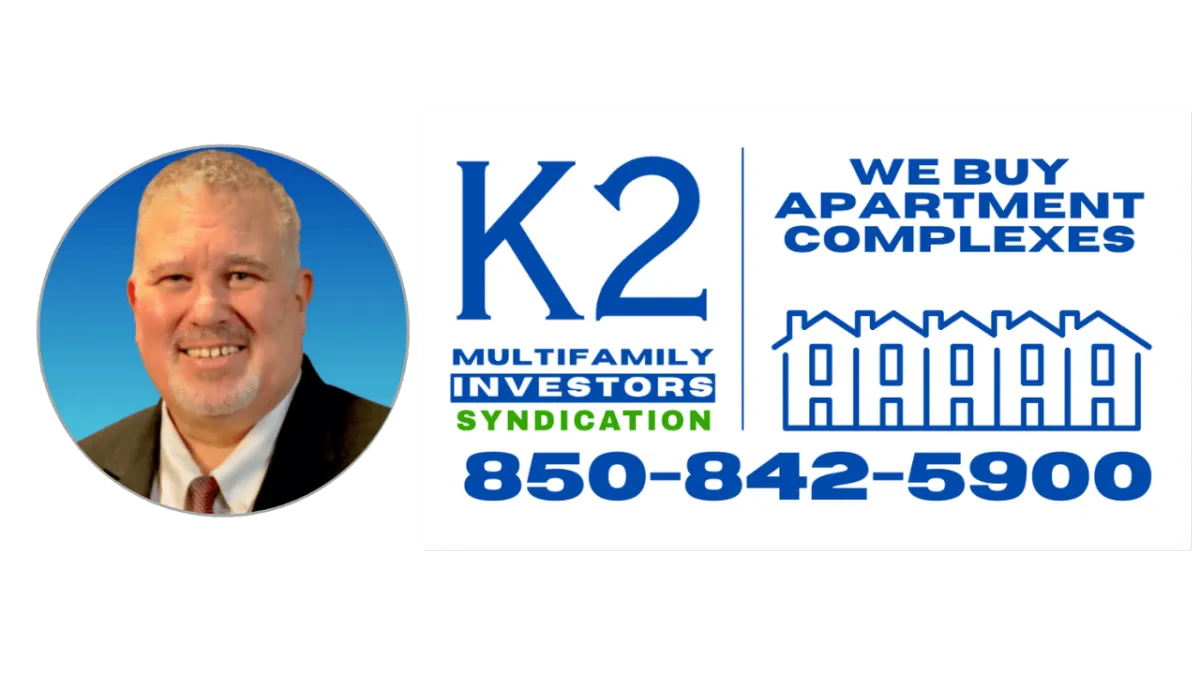 My name is Steve Kazella, if you have decided that it is time to sell your apartment building or sell a multifamily property, we can help you. I'd like to discuss purchasing it from you. The acquisition services that we offer allow apartment sellers to dispose of their multifamily properties quickly and efficiently, by selling directly to your buyer - me, without having to pay upwards of six figures in real estate commissions. I'm local and based out of the Northwest Florida / Pensacola area, and I can come and meet with you on short notice at your apartment complex if you are local. Please let me know how K2MI can be of value to you.